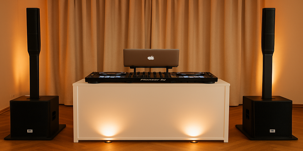 Sie erhalten hochwertige Ton- und Lichttechnik, professionelle Vorbereitung sowie eine musikalische Begleitung, die perfekt zu Ihrem Abend passt.